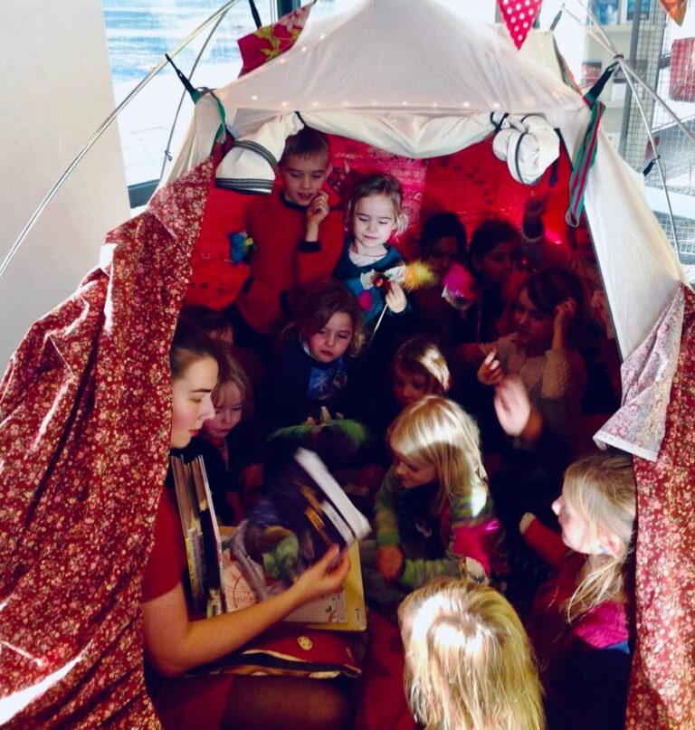 Kom na de film in onze knusse verhalentent verschillende boekjes ontdekken, telkens over een ander dierenverhaal! Bovendien kruipen we nadien in dat verhaal aan de hand van een activiteit. Deze activiteiten variëren van boek tot boek. Zo wordt theater afgewisseld door dans, activiteiten met de parachute, iets knutselen…